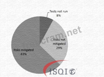 The graph indicates that a significant portion of risks, 29%, have not been mitigated, which suggests that these are either failed tests or other discovered failures. This level of unmitigated risk puts the project at risk, as it implies that there are still substantial issues that need to be addressed. References:The ISTQB Advanced Level Test Manager documents outline the importance of risk-based testing and the interpretation of residual risk graphs. These graphs are used to communicate the current status of risk mitigation efforts in the project, and a high percentage of unmitigated risks is a clear indicator of potential problems1.
