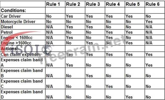 The decision table above shows a company's fuel expenses structure.