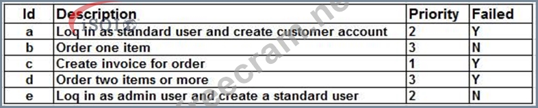The test plan requires that re-tests must be performed first, followed by the highest priority tests. To save time, the test plan states that tests should be scheduled to create test data for the subsequent tests in the schedule.