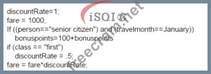 For the code fragment given below, one test case is required for statement coverage and two test cases are required for branch coverage. Statement coverage requires that every executable statement in the code is executed at least once. Branch coverage requires that every possible outcome of each decision point in the code is executed at least once. The following table shows how to achieve statement and branch coverage for the code fragment: