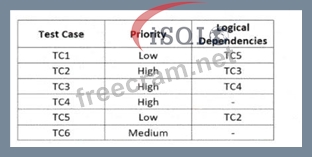 For each of the test cases to be executed, the following table specifies the priority order and dependencies on other test cases Which of the following test execution schedules is compatible with the logical dependencies and allows executing the test cases in priority order?