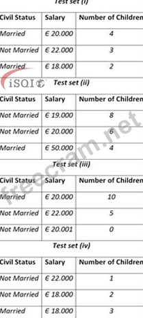 Using the "Tax System" specification scenario as described above, using boundary value analysis, which would be the most interesting test set to explicitly test one single boundary value as defined in the "Tax System" specification?