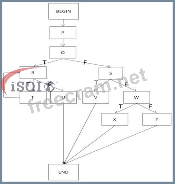 The flow graph below shows the logic of a program for which 100% statement coverage and 100% decision coverage is required on exit from component testing.