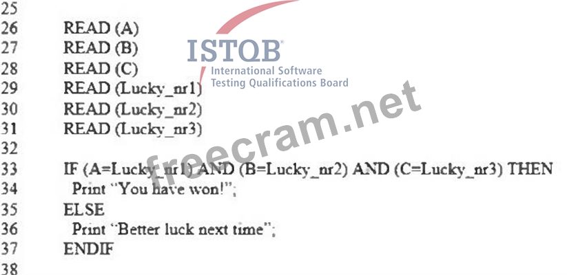 Consider the code fragment provided below: How many test cases are needed for the code fragment lines 26 - 37 to achieve 100% modified condition/decision coverage?