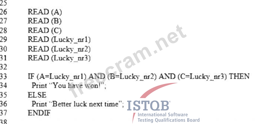 Consider the code fragment provided below: How many test cases are needed for the code fragment lines 26 - 37 to achieve 100% modified condition/decision coverage?