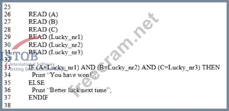 Consider the code fragment provided below: How many test cases are needed for the code fragment lines 26 - 37 to achieve 100% modified condition/decision coverage?