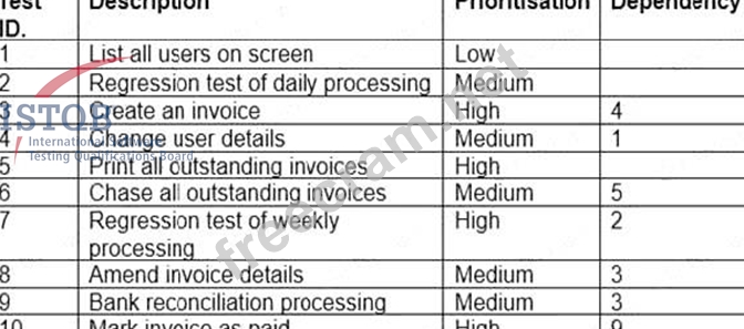 Tests have been specified for the latest software release and users have prioritised these. However, there are some dependencies between tests as shown in the table below (e.g. Test ID. '123' cannot be run until Test ID. '456' has been successfully completed). Which test execution schedule best meets the prioritisation and dependency conditions?