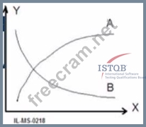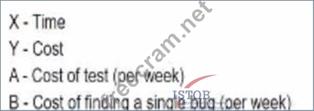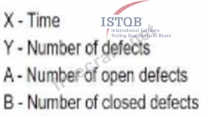 Option D correctly explains what is represented by the lines A, B and the axes X, Y in a testing metrics chart. According to option D: X-axis represents Time Y-axis represents Count Line A represents Number of open bugs Line B represents Total number of executed tests This information is essential in understanding and analyzing the testing metrics of a completed project.