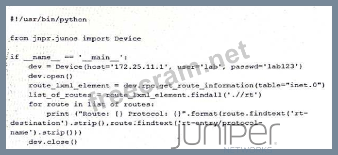 Question 18: You are asked to develop a PyEZ application that will connec...