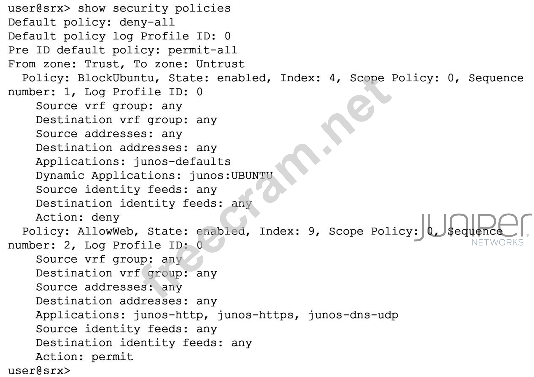Question 86: Referring to the exhibit, what will the SRX Series device do...