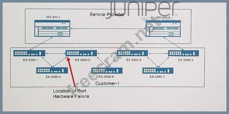Customer 1 has experienced some hardware failures that erroneously transitioned some links into a forwarding state, as shown in the exhibit.