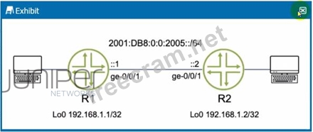 You are asked to configure OSPF between routers R1 and R2 using IPv6 addresses.