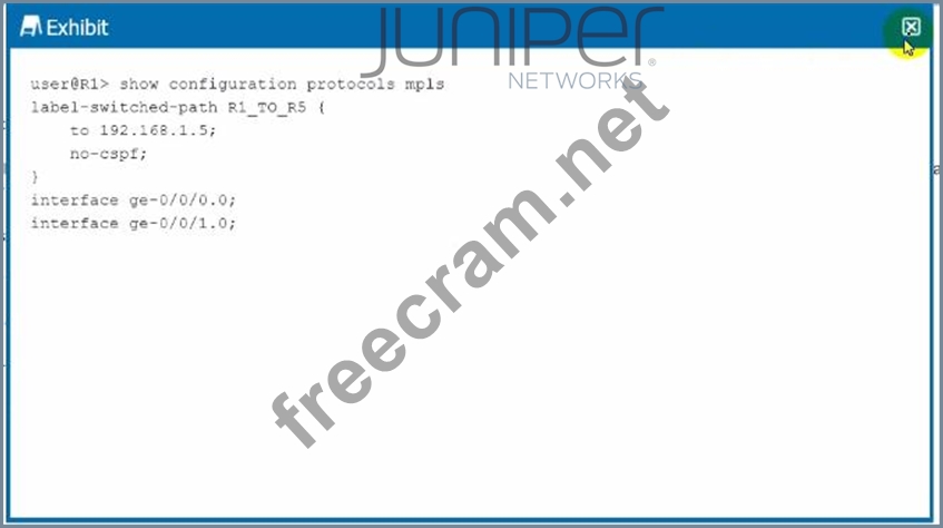 Exhibit You have an established LSP between your R1 and R5 devices using the configuration shown in the exhibit. You are asked to ensure that MPLS labels are used to forward traffic by all devices within the LSP. Which action will accomplish this behavior?