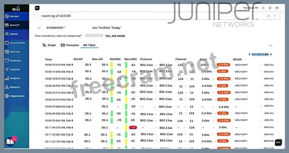 Click the Exhibit button. A user opened a ticket. Upon troubleshooting, you determine that frequent roaming is the root cause of the problem. Referring to the exhibit, which statement describes the roaming issue that the client is experiencing?