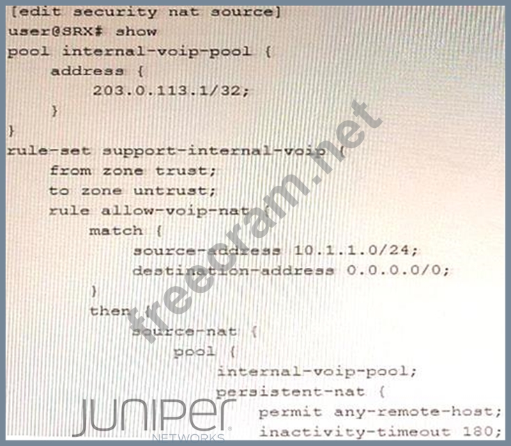 Question 51: Exhibit (Exhibit) You configure Source NAT using a pool of a...