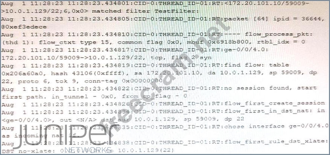 The exhibit shows a snippet of a security flow trace.