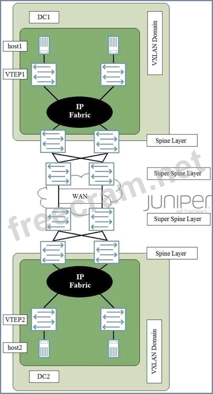 You have deployed two data centers that require a Layer 2 stretch between host1 and host2.