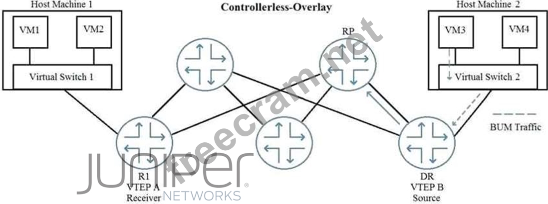 Question 13: Exhibit. (Exhibit) An EVPN-signaled VXLAN overlay has been d...