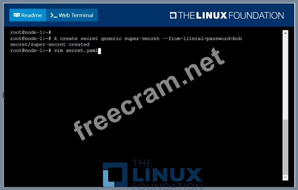 Create a Kubernetes secret as follows: Name: super-secret password: bob Create a pod named pod-secrets-via-file, using the redis Image, which mounts a secret named super-secret at /secrets. Create a second pod named pod-secrets-via-env, using the redis Image, which exports password as CONFIDENTIAL