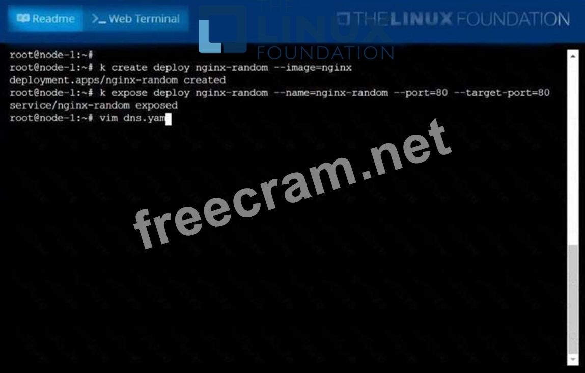 Create a deployment as follows: * Name: nginx-random * Exposed via a service nginx-random * Ensure that the service & pod are accessible via their respective DNS records * The container(s) within any pod(s) running as a part of this deployment should use the nginx Image Next, use the utility nslookup to look up the DNS records of the service & pod and write the output to /opt/KUNW00601/service.dns and /opt/KUNW00601/pod.dns respectively.