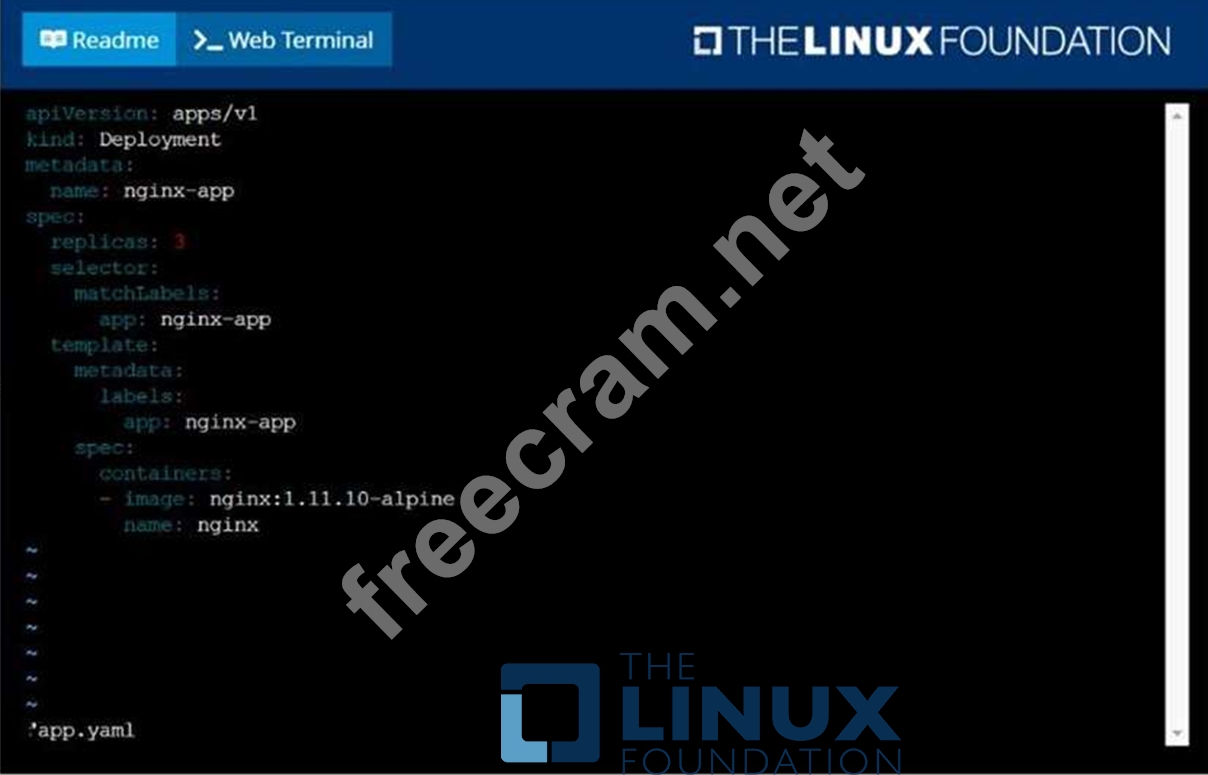 Question 33: Create a deployment as follows: Name: nginx-app Using contai...