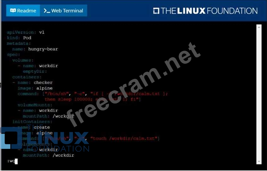 Question 23: Perform the following tasks: * Add an init container tohungr...