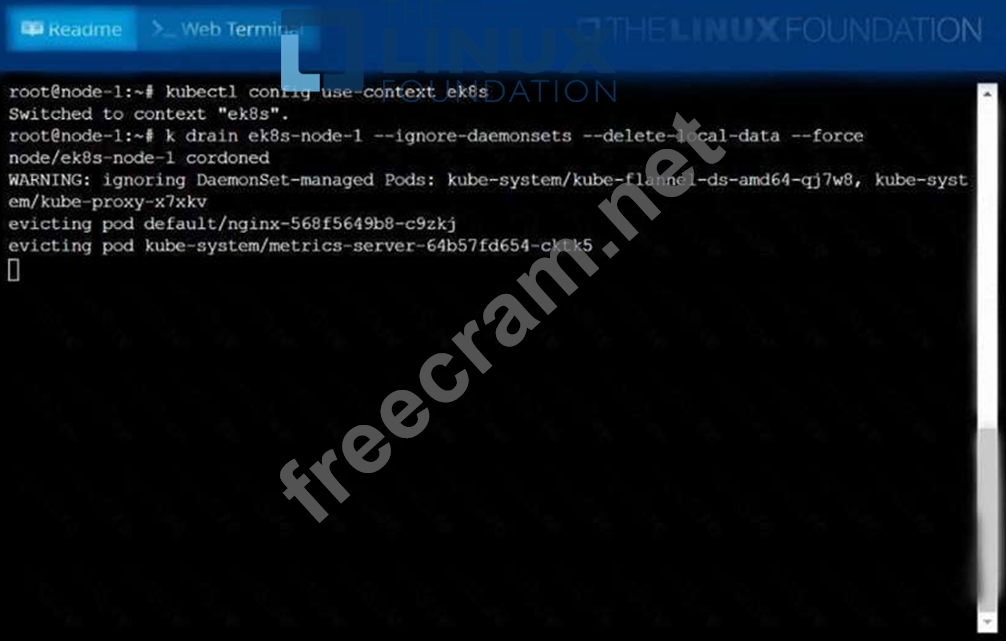Question 67: Set the node named ek8s-node-1 as unavailable and reschedule...