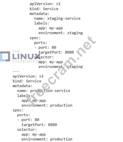- Define services for both 'staging' and 'production' environments, ensuring that the services for each environment are named appropriately. For example, 'staging-service' and .