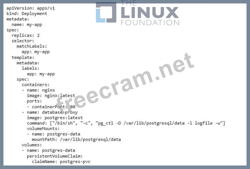 - Define a new container in your Deployment's 'spec-template-spec-containers' array, alongside the existing Nginx container. This new container will house the necessary tools for facilitating a secure database connection.