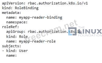 - RoleBinding: - Bind the Role to the users or groups you want to authorize. For example, bind the 'myapp-reader-role' to a specific user: