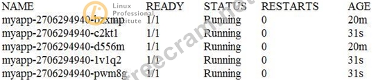 Consider the following Kubernetes Deployment: With the ReplicaSet: And the Pods: What happens if one of the Pods is terminated with the command kubect1 pod delete?
