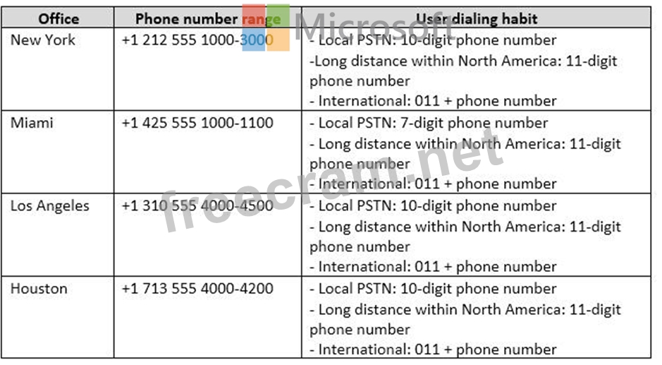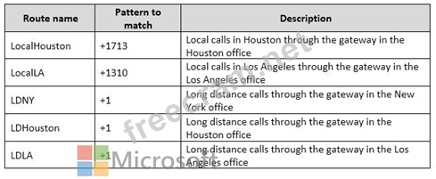 All telephone calls from the Los Angeles office and the Miami office are routed through a public switched telephone network (PSTN) gateway in the New York office.