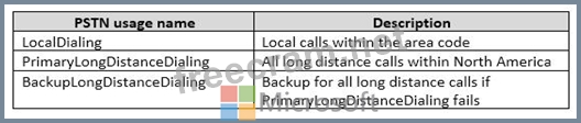 The PSTN usage for the users in the Los Angeles Office is configured as shown in the following table: