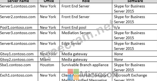 The company uses a SIP domain of contoso.com. The voice infrastructure is configured as shown in the following table: