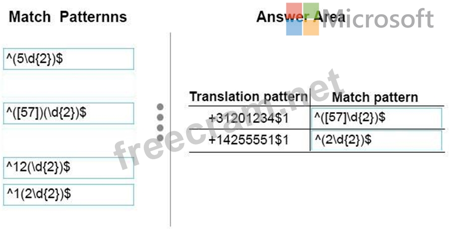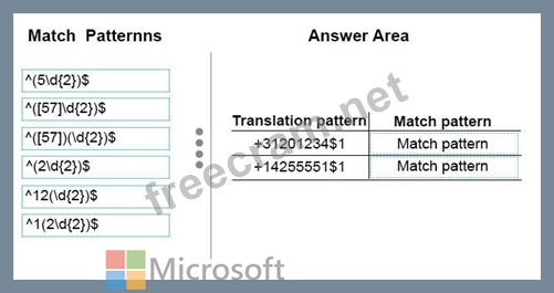 Which match patterns should you use? To answer, drag the appropriate match patterns to the correct translation patterns on the answer area. Each match pattern may be used once, more than once, or not at all. Additionally, you may need to drag the split bar or scroll to view content.