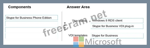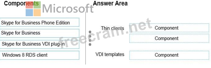 Which components should you install on the thin clients and the VDI templates? To answer, drag the appropriate components to the correct location in the answer area. Each component may be used once, more than once, or not at all. Additionally, you may need to drag the split bar between panes or scroll to view content. Each correct answer is worth one point.