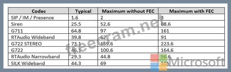Audio codec bandwidth: