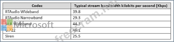 You support Skype for Business Server 2015 servers in your customer's network. The network includes two branches connected with an 8 megabits per second (Mbps) network circuit. The circuit has 1 Mbps of dedicated bandwidth for Skype for Business voice traffic. The network is required to handle 50 peer-to- peer (P2P) calls at a minimum using the Skype for Business 2015 client.