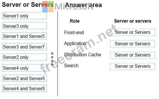 Where should you deploy the server roles? To answer, drag the appropriate server or servers to the correct roles. Each server or set of servers may be used once, more than once, or not at all. You may need to drag the split bar between panes or scroll to view content.