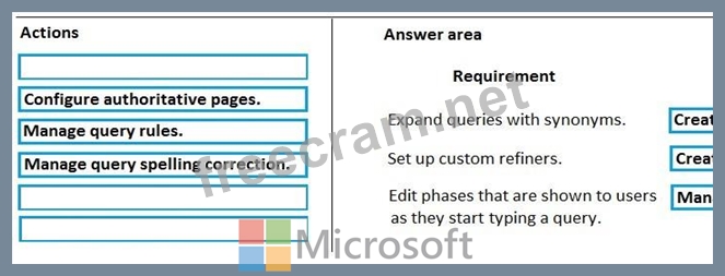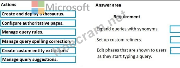 For each requirement, which action should you perform? To answer, drag the appropriate action to the correct requirement. Each action may be used once, more than once, or not at all. You may need to drag the split bar between panes or scroll to view content.