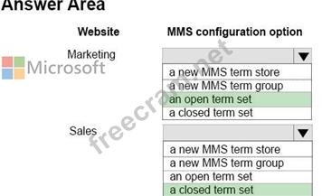 For each website, which MMS configuration option should you use? To answer, select the appropriate option from each list in the answer area.
