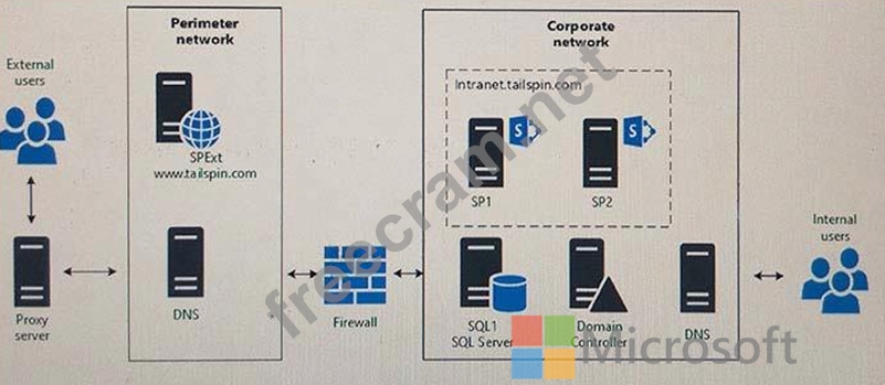 The following diagram shows the topology of the SharePoint farm: