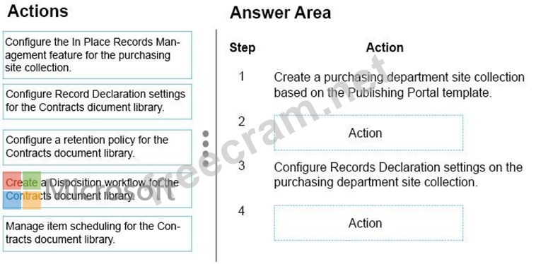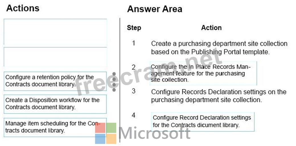 What should you do? To answer, drag the appropriate actions to the correct steps. Each action may be used once, more than once, or not at all. You may need to drag the split bar between panes or scroll to view content.