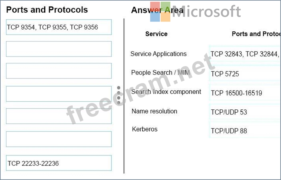 To answer, drag the appropriate set of port ranges to the correct service. Each set of ports ranges may be used once, more than once, or not at all. You may need to drag the split bar between panes or scroll to view content.