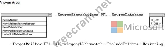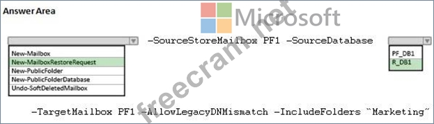 You have a mailbox database named PF_DB1 that contains a public folder mailbox named PF1. PF1 contains a public folder named Marketing.
