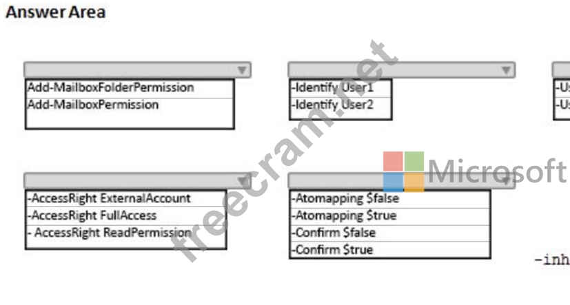 You need to ensure that a user named User1 can read and delete the email messages in the mailbox of a user named User2. User1 must add the mailbox of User2 manually to the Microsoft Outlook profile.