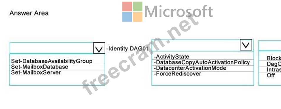 Question 42: HOTSPOT You need to configure DAG01 to meet the availability...