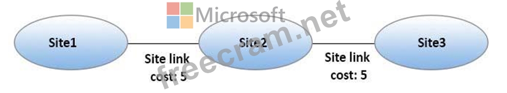 Your network contains an Active Directory forest that has the site topology shown in the diagram.