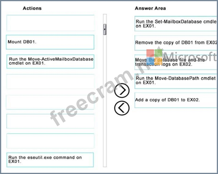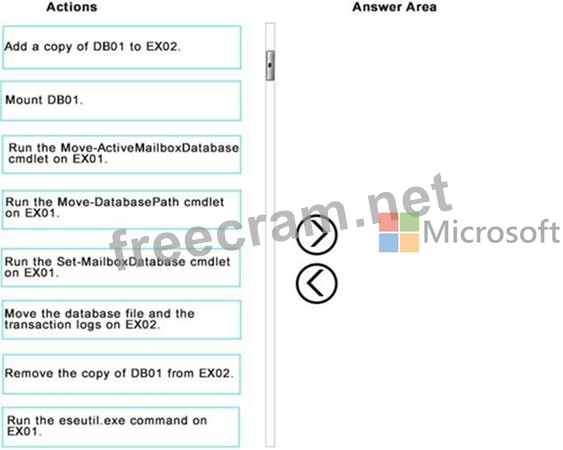 You plan to move the database file and the transaction logs of DB01 to a new location.