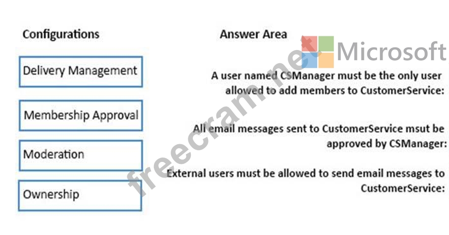 You need to configure a distribution group named CustomerService that has the following configurations: